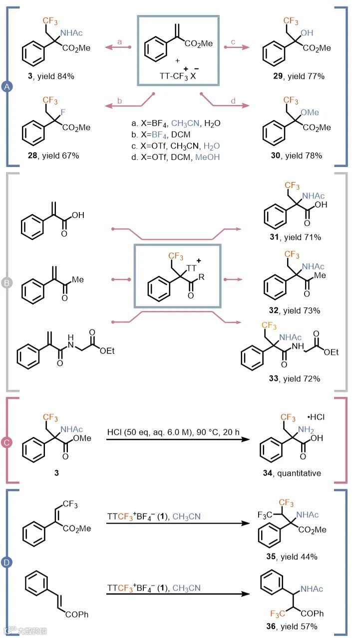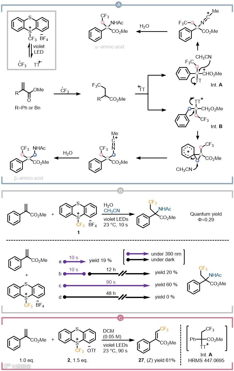 此项工作第一作者为博士生贾皓。Tobias Ritter教授课题组自2018年开创性研究芳基噻蒽盐(Ar-TT+)以来,2021年起独辟蹊径发展了一系列基于噻蒽骨架的试剂,包括乙烯基试剂TT+-CH=CH2,氨基试剂TT+-NHR,以及本文介绍的三氟甲基试剂TT-CF3+。近期,TT-CF3+已由Merck公司商品化销售。