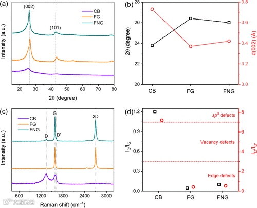 图2. 闪蒸石墨烯的XRD及拉曼表征