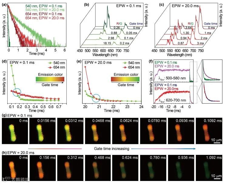 图2. 不同脉宽激发下的瞬态响应光谱及发光颜色调制。图片来源:Angew. Chem. Int. Ed.