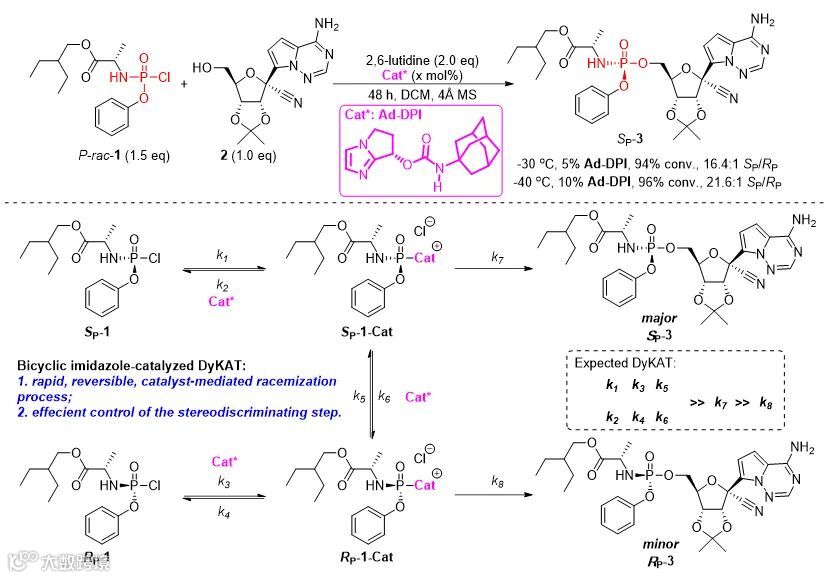 图3. Ad-DPI催化的动态动力学不对称转化合成瑞德西韦