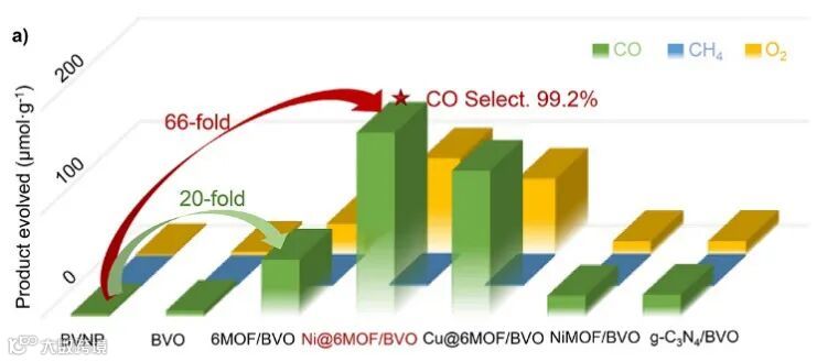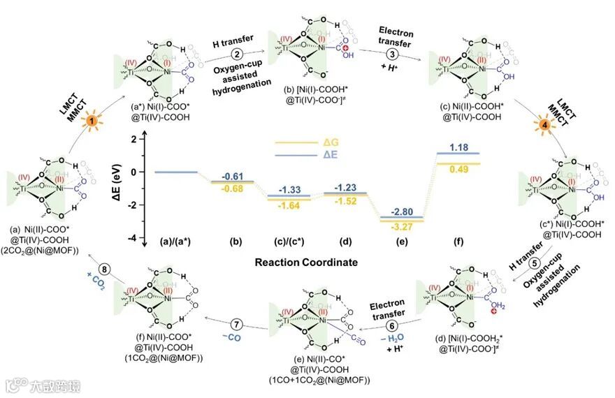 图3. Ni@MOF/BVO光催化剂的还原路径分析及DFT能量计算结果。图片来源:Adv. Mater.