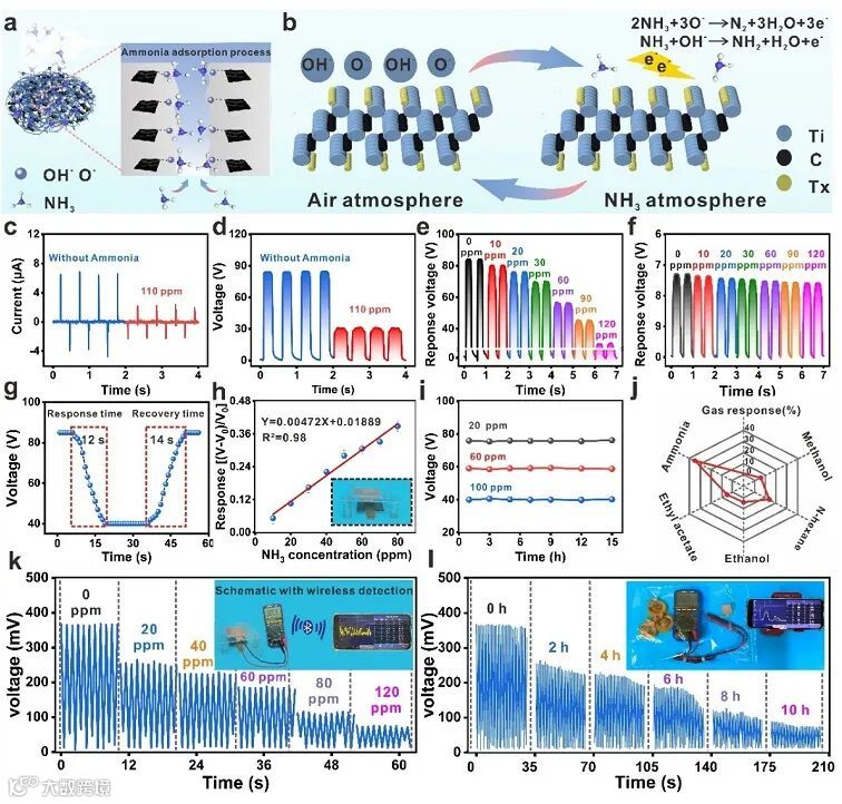 近日,广西大学聂双喜教授团队采用“间歇式抽滤”的策略,构建了一种具有分层结构的高吸附性的气敏纤维素摩擦电材料,并将其应用于自供电气体传感。首先,将水浴过程中水解的活性硅醇单体或低聚物物理吸附到纤维素的羟基上,接着再引入Ti3C2Tx。然后进行间歇式抽滤。随着抽滤次数的增加,分层排列的片间距逐渐变小,逐渐形成分层结构。研究发现,得到的纤维素摩擦电材料对氨气具有快的响应/恢复 (12 s/14 s) 、高灵敏度响应 (Vair/Vgas=2.1)、高选择性响应 (37.6 %) 以及低检测极限 (10 ppm)。此外,该材料还能在10 -120 ppm范围内准确识别氨气浓度变化,并将信号无线传输至用户界面,为实时在线监测环境中的氨气提供便利。这项成果发表在Advanced Science 上。广西大学为该论文的唯一完成单位,第一作者为广西大学轻工与食品工程学院2020级硕士研究生张旺林,通讯作者为聂双喜教授。