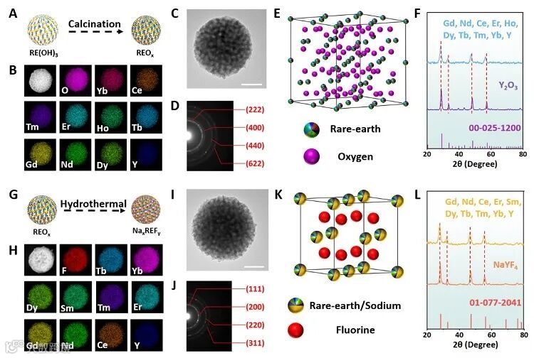 图2. 高熵DM-REOx和DM-NaxREFy纳米粒子的结构表征。图片来源:Sci. Adv.