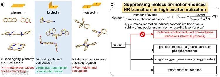 折叠π分子设计填补了π结构和有效π堆积之间的鸿沟,为精确、可预测的高固态激子利用分子设计提供了新思路。基于折叠π设计思想,结合明智的分子基元结构选择,优异固体材料性能将变得更加容易获得。