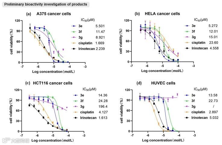 在四种癌细胞中表现出了良好的抑制作用,更加深入的生物活性测试还在进行当中。作者相信该类手性化合物在抗肿瘤活性方面具有一定的开发潜力。