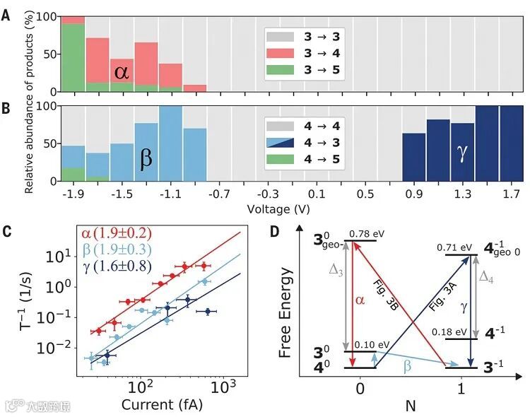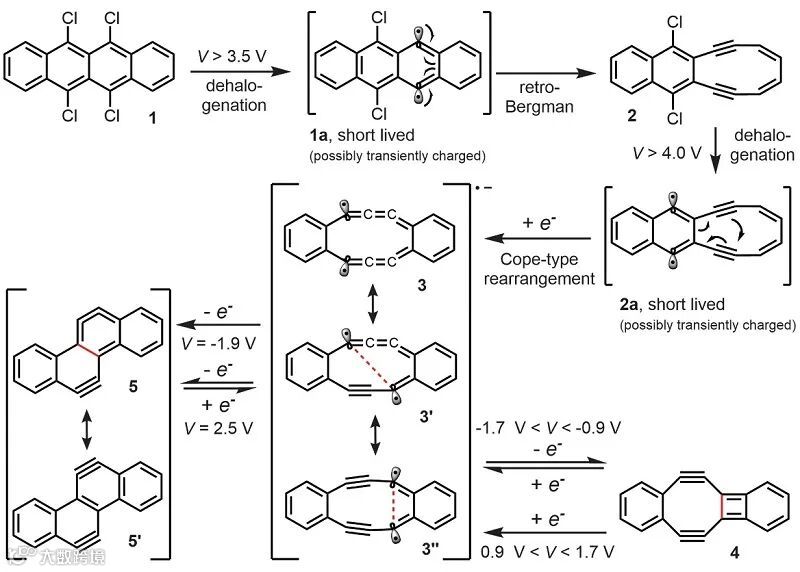 近年来,苏黎世IBM欧洲研究院(IBM Research Europe – Zurich)的Leo Gross团队致力于使用STM和AFM等手段对分子进行原子水平研究。近日,他们与苏黎世IBM欧洲研究院Florian Albrecht、西班牙圣地亚哥德孔波斯特拉大学(USC)Diego Peña等研究者合作,实现了针尖诱导表面氧化还原反应促进的可逆且选择性的键形成与解离。他们合成了四氯并四苯分子并将其吸附在铜上生长的薄盐层上,通过控制STM针尖所施加电压脉冲的极性和幅度,实现了能产生不同构造异构体的选择性分子重排,并对其机理进行了深入研究。这种针尖诱导的选择性单分子反应有利于我们对氧化还原化学的深入理解,并为开发新的分子机器带来了启发。相关成果发表于Science 上,并被选为当期封面。