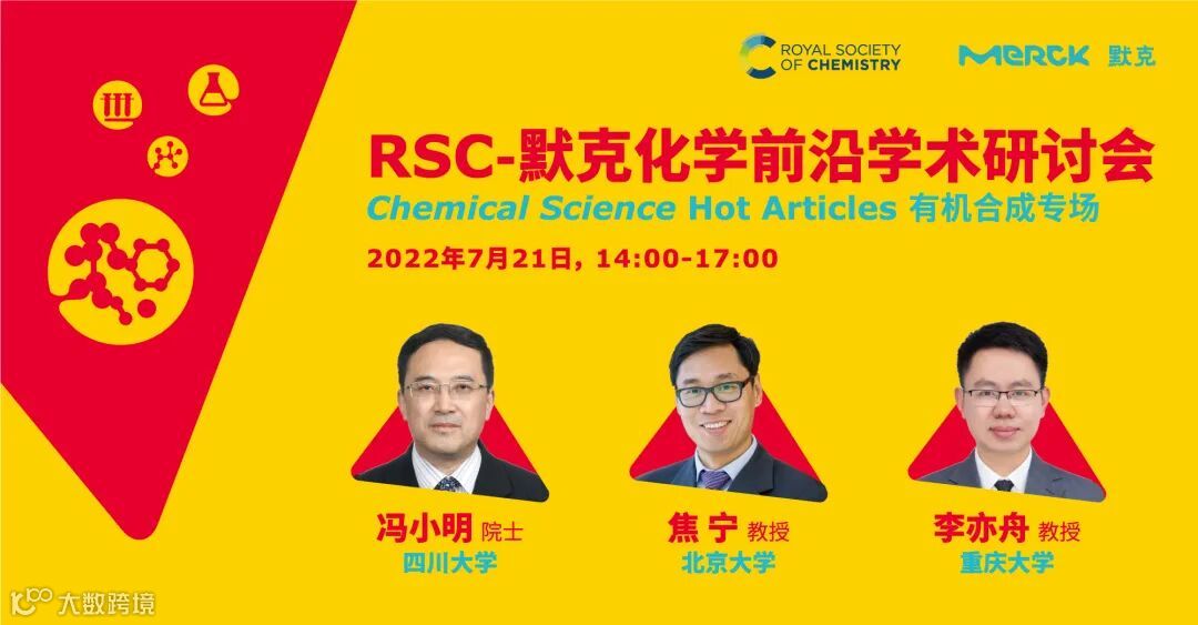 2022年默克推出化学网络研讨会系列活动,旨在邀请亚太地区化学各领域的顶尖科学家分享科学知识,并提供一个前沿科学的交流平台。默克公司(Merck KGaA)将于近期和英国皇家化学会(以下简称RSC)联合举办“RSC-默克化学前沿学术研讨会”有机合成专场,定档7月21日,拉开一场化学盛宴的帷幕!