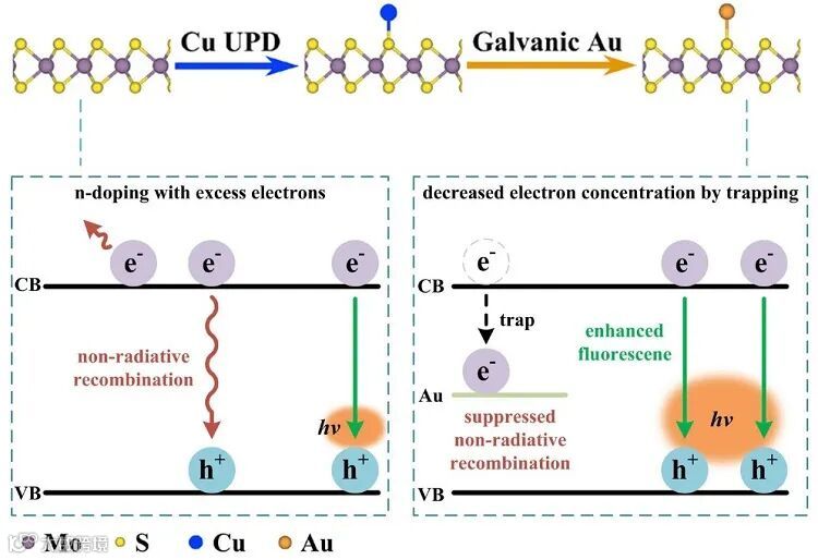 图3. 修饰单原子Au增强MoS2 QDs荧光效率的机制示意图。图片来源:Angew. Chem. Int. Ed.