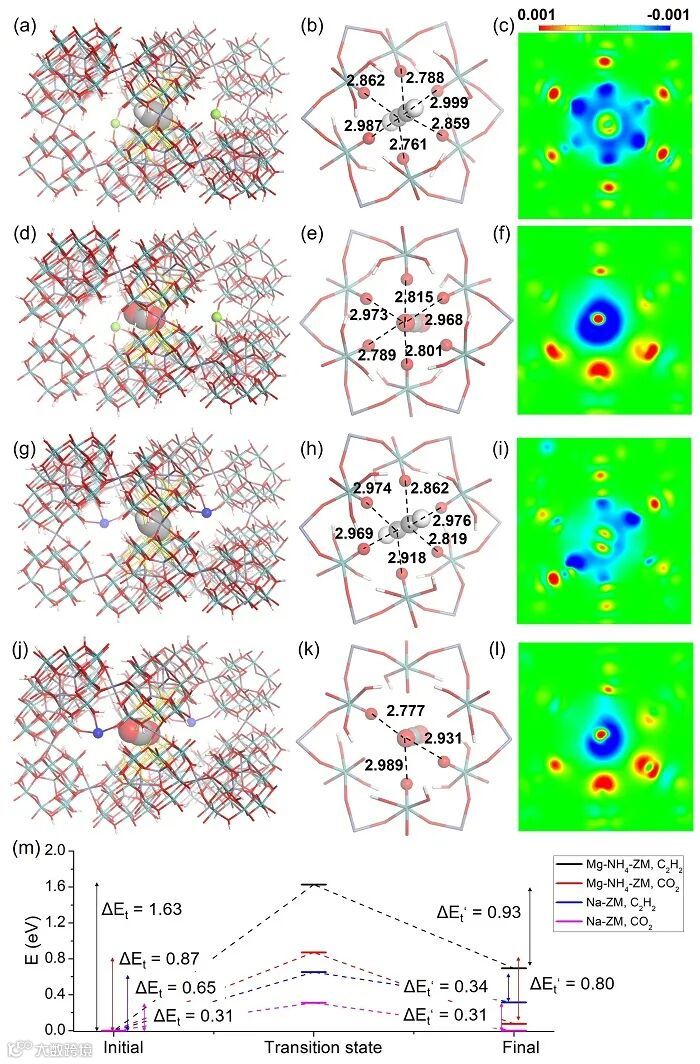 图3. C2H2和CO2分子通过孔口的过渡态模拟图。图片来源:Angew. Chem. Int. Ed.
