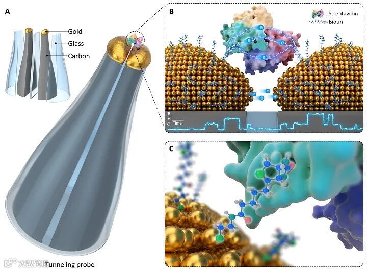 图2. 基于隧穿结的单体蛋白质器件示意图。图片来源:Sci. Adv.