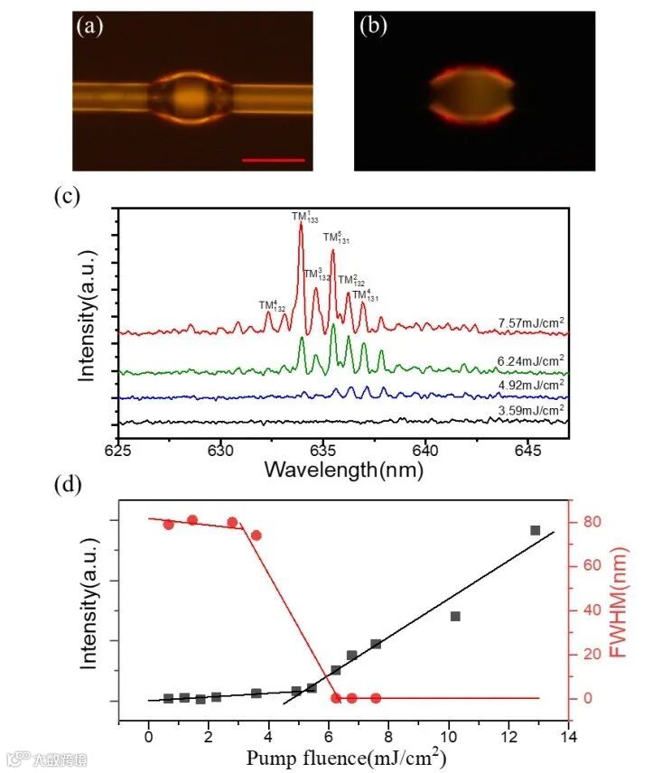图6. 基于大环2-2BF2的回音壁模式激光特征图