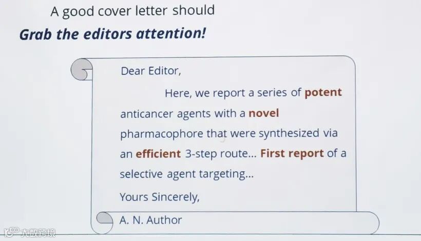 最重要的是“抓住编辑的眼球”,善于运用吸引人的字眼来引起编辑的注意,让他看到你的研究是新颖且具有重要意义的,比如像下面这样: