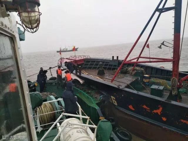 11时15分,在“甬港拖27”轮全船水手的帮助下,黄沙船遇险船员全数转移安置,随后,拖轮调头前往梅山码头送医。