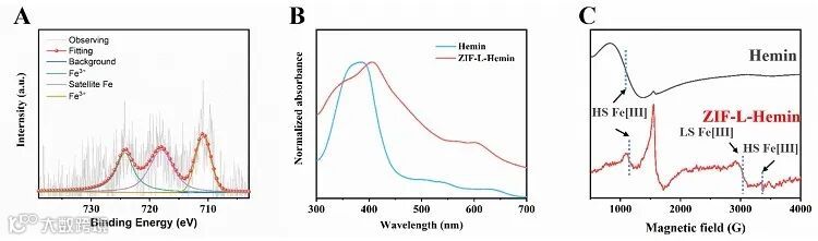 图3. 血红素在ZIF-L内部的存在状态表征。图片来源:Anal. Chem.