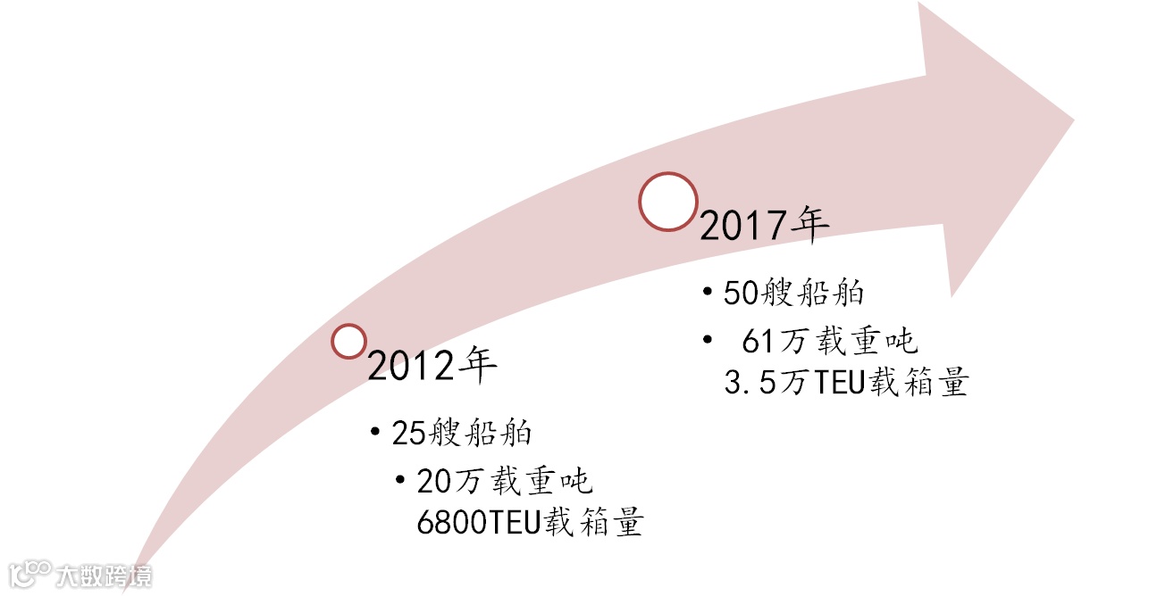 宁波远洋箱运量从2012年的113.5万标准箱增长至2016年的212.8万标准箱,年均增幅为17.3%;2017年全年计划完成240万标准箱,助力宁波舟山港开拓腹地、集聚箱源。