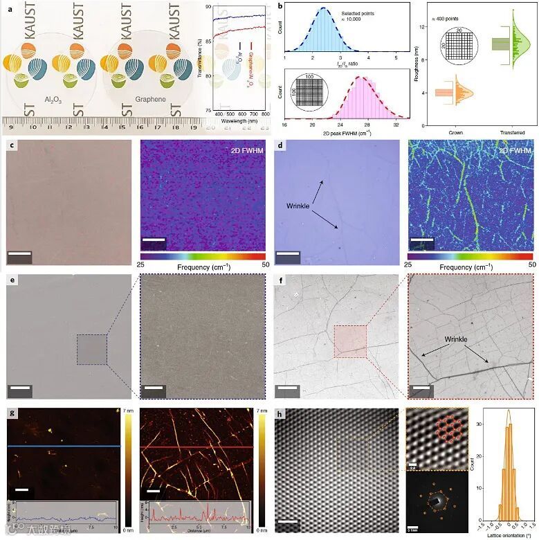 晶圆尺寸单晶石墨烯的性质表征。图片来源:
