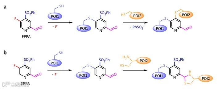 图2. FPPA介导的高效蛋白质偶联反应路线示意图。图片来源:Angew. Chem.