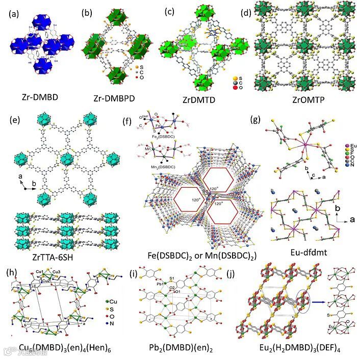 图5. 由羧基-硫醇配体分子构建的各种MOF结构的示意图