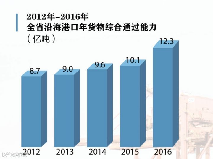2012年-2016年全省沿海港口年货物综合通过能力