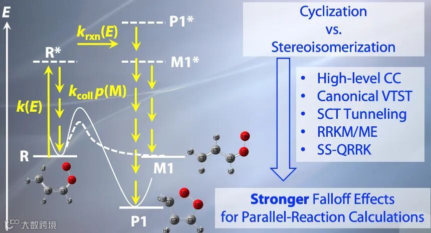 A:研究想法来源于一次文献研读中,文献中考虑了scsAO的构象异构体的单一通道反应,没有考虑构象异构体的反应途径与环化反应是否能够形成竞争。我们以此为契机,考虑scsAO的单分子转动异构化和环化反应通道,并在反应动力学计算中引入转动异构化途径对环化反应通道的影响,从而探索转动异构化途径是否会影响化学反应动力学。此外,该现象也在其他反应体系中找到,这对于揭示影响化学反应动力学的本质因素具有重要意义。
