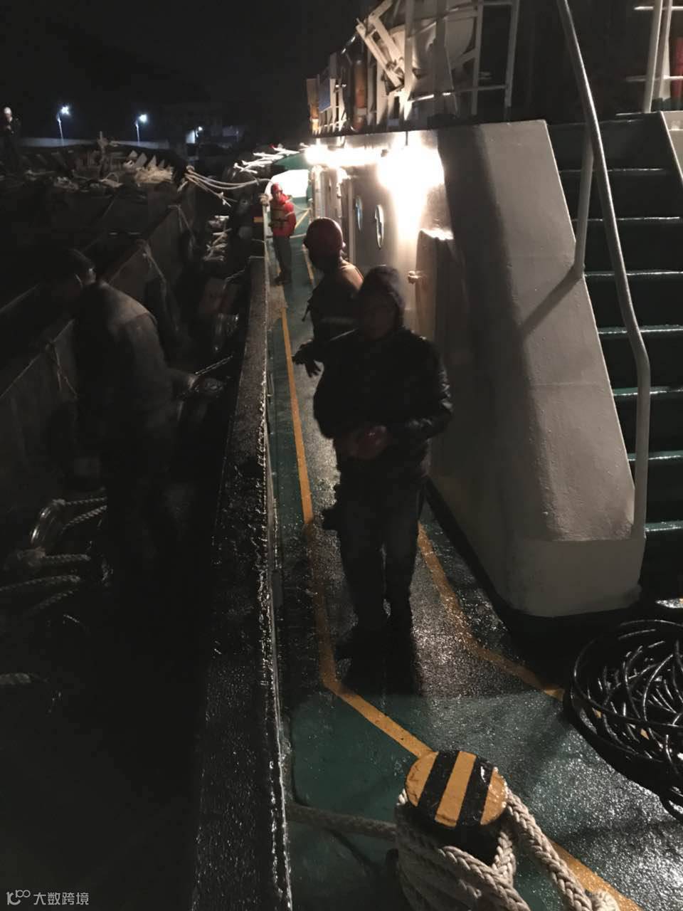 12月14日凌晨2点20分,“舟港拖7”轮协助事故船只“舟绿清18”轮靠拖台门杂货码头。“舟绿清18”轮的船员们遭受了船只倾覆险情的惊吓和大风浪的袭击,终于吃上了热气腾腾的面食,化险为夷的他们露出了感激的笑容。