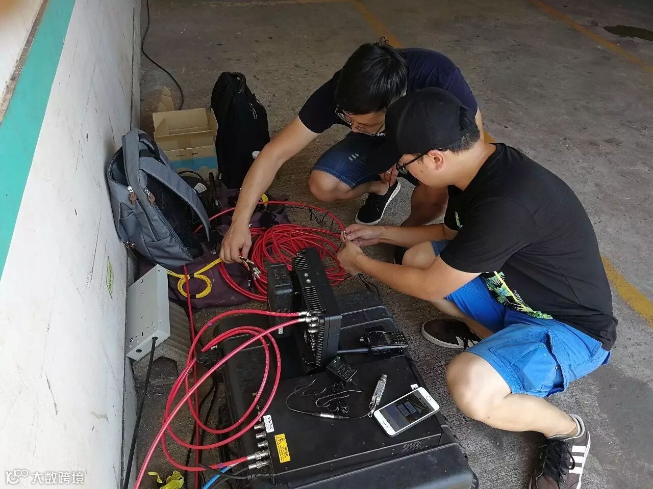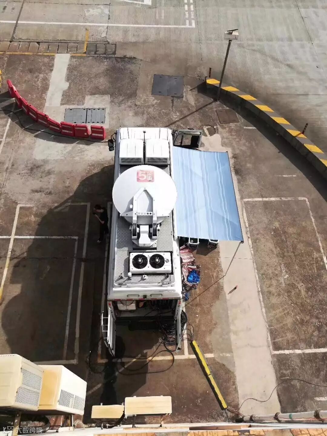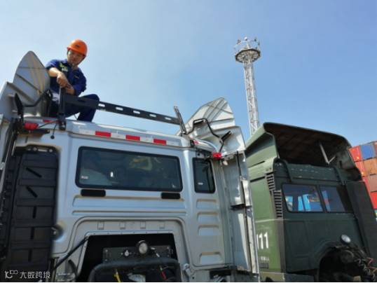 码头技术人员提前在集卡车上安装发射天线。
