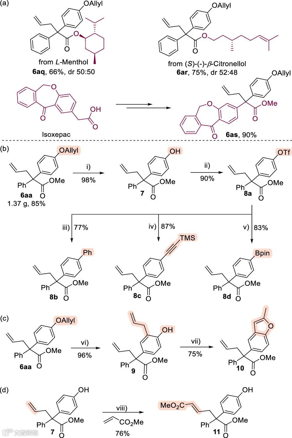图2. 该方法的合成应用和产物的化学转化