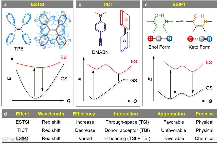 图5. ESTSI与TICT以及ESIPT的对比。