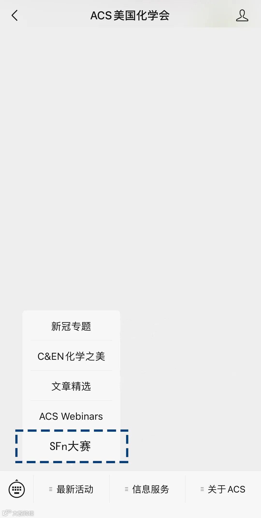 关注微信公众号“ACS美国化学会”, 点击进入“SFn大赛”菜单,填写注册信息后进入课程学习: