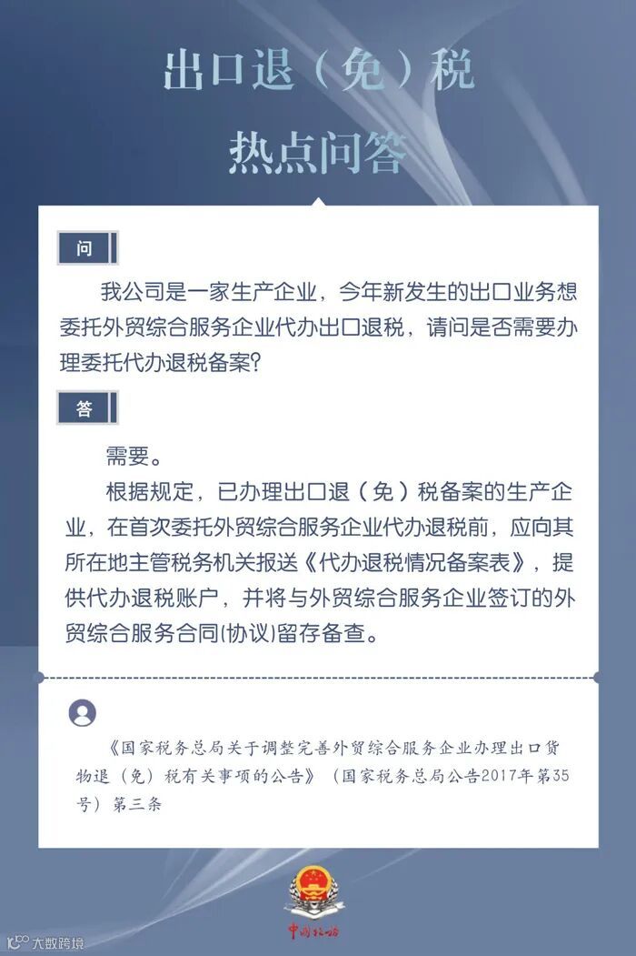 企业新发生的业务委托外贸综合服务企业代办出口退税,是否需要办理委托代办退税备案?
