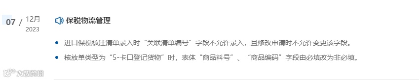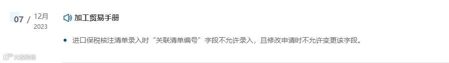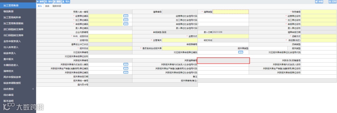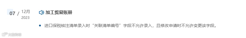进口保税核注清单录入时“关联清单编号”字段不允许录入,且修改申请时不允许变更该字段。