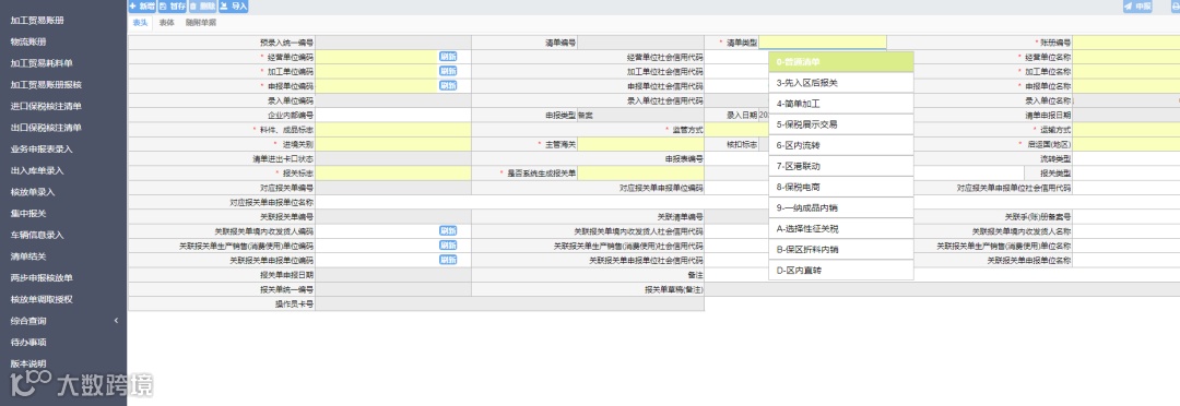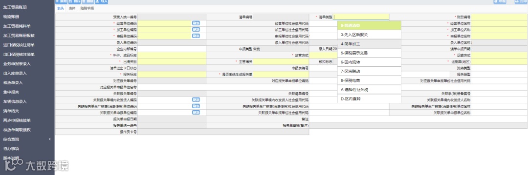 核注清单表头“清单类型”字段新增“D-区内直转”。