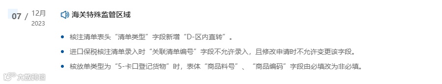 变更后截图丨海关特殊监管区域进口、出口核注“清单类型”字段新增“D-区内直转”