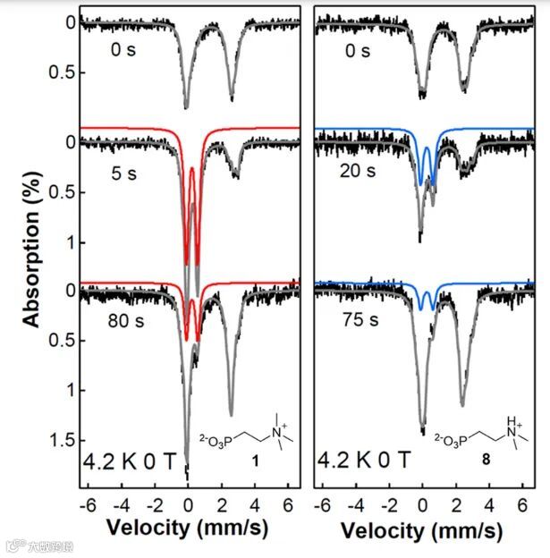 图4. Zero-field Mössbauer光谱监测活性物种积累
