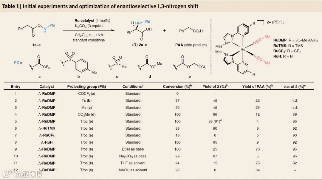 图2. 对映选择性1,3-氮迁移的初步实验与优化。图片来源: