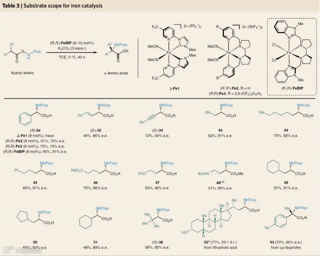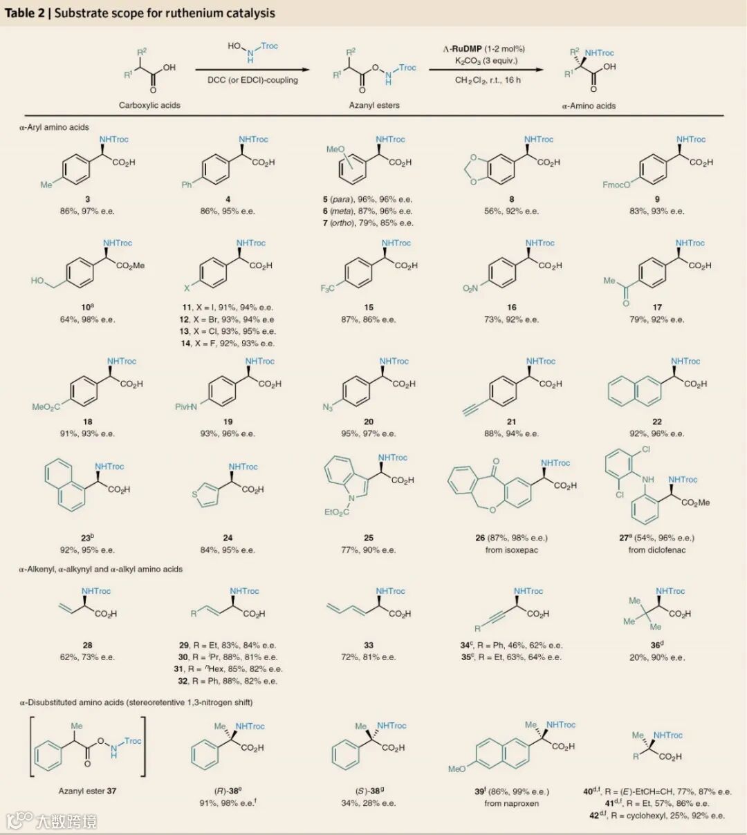 )则能以优异的收率和对映选择性获得相应的手性氨基酸(