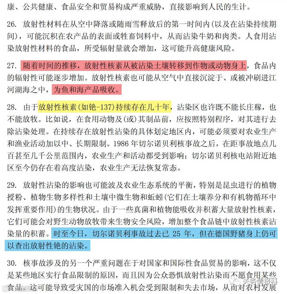 最后,科长查找了一份源自《联合国全系统对福岛第一核电站事故影响的研究秘书长的报告》,如下图。