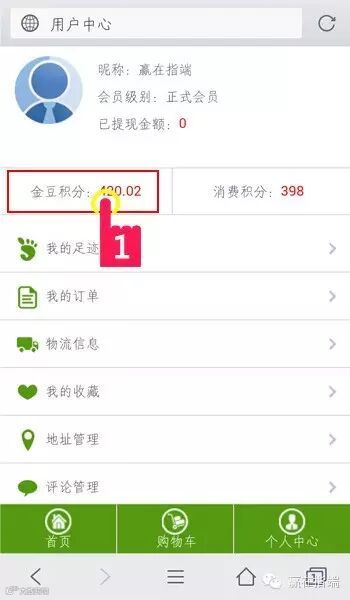 登陆您的账号后,在您的个人中心点击【金豆积分】如图所示;