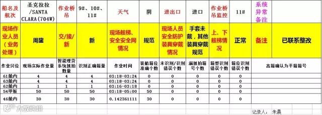 现场作业时,后台智能理货员借助智能理货视频监控设备,对作业船舶船梯、安全网、踏板等安全设施铺设的情况,以及现场上、下船梯人员的扶梯情况、背包方式等规范性要求进行督查,并对监护结果进行汇总、处理、反馈,逐一登记,从而达到远程可视化安全监护,保障班组现场人员的作业安全。