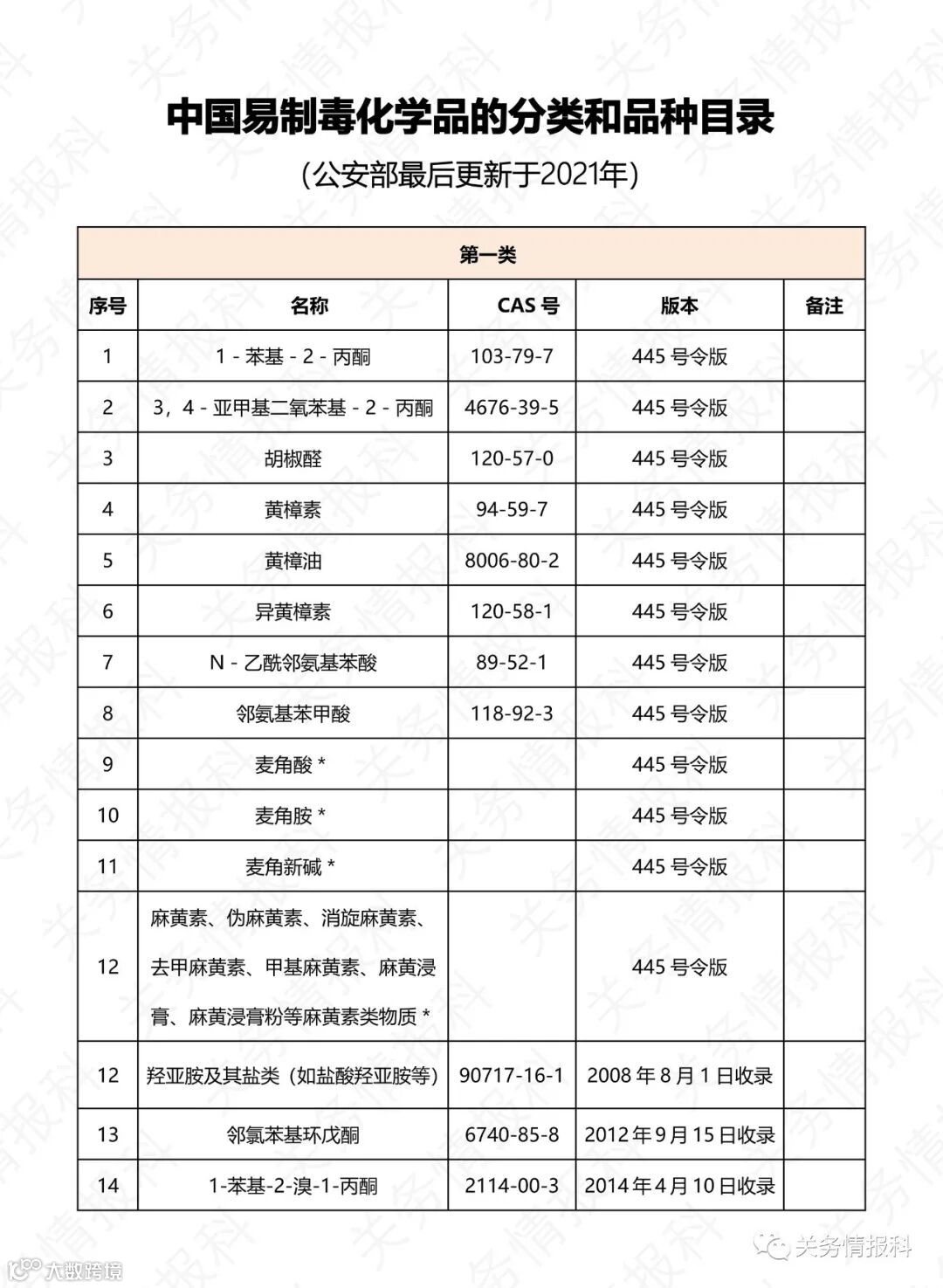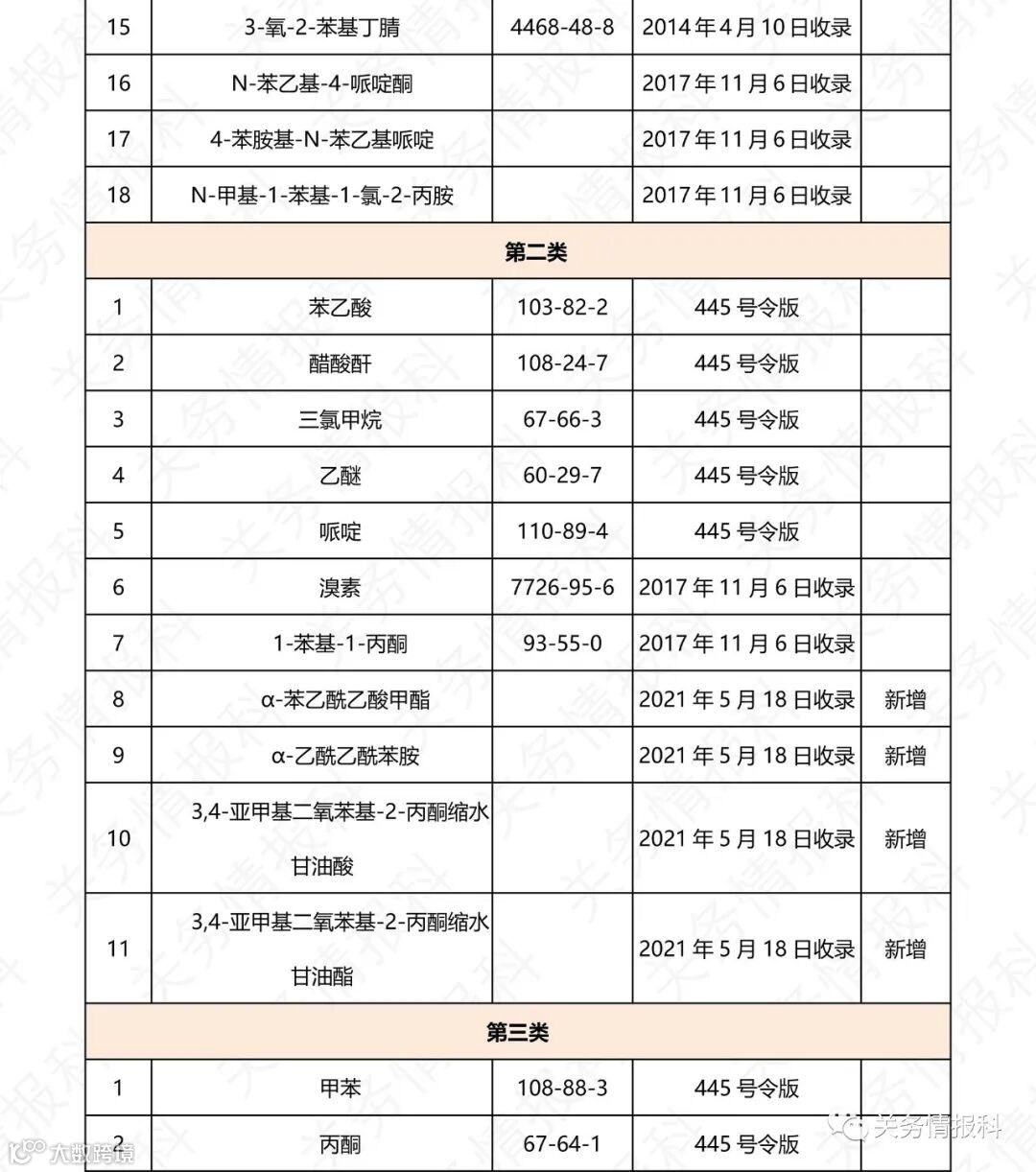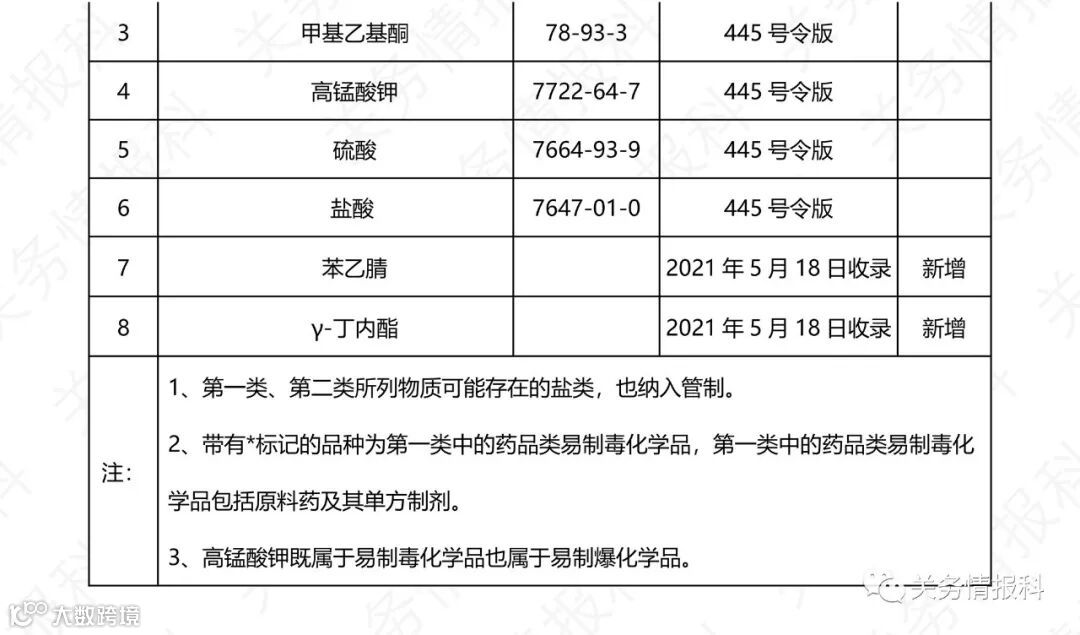 【进口清关】(中文版)美国和中国易制毒化学品管制目录表,进出口务必注意