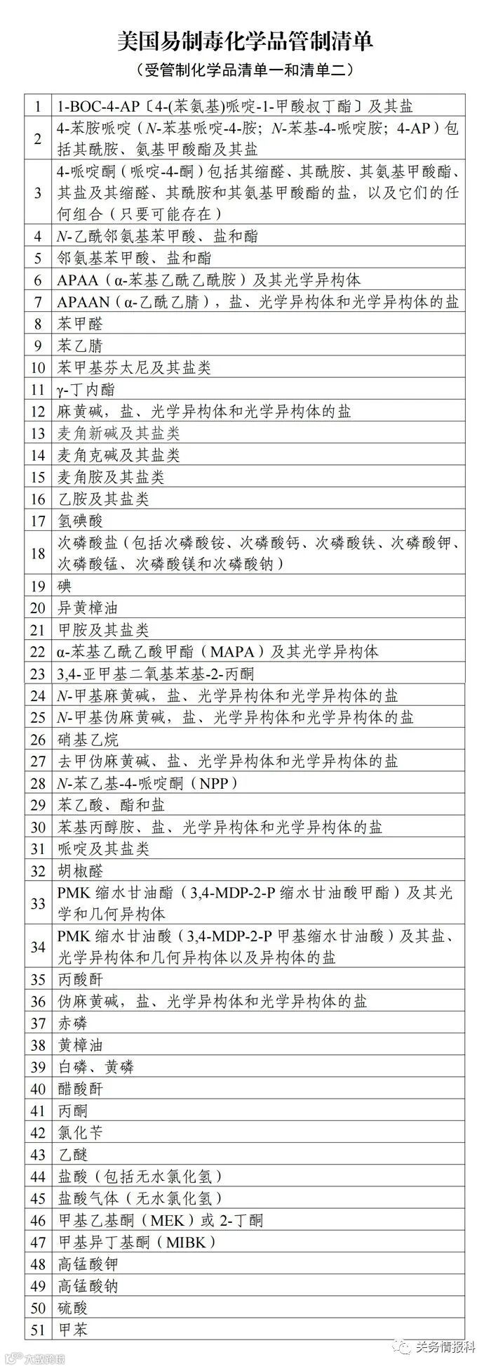 美国易制毒化学品管制清单