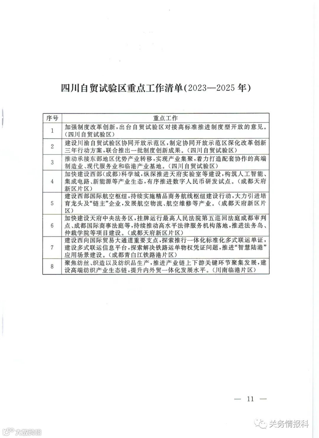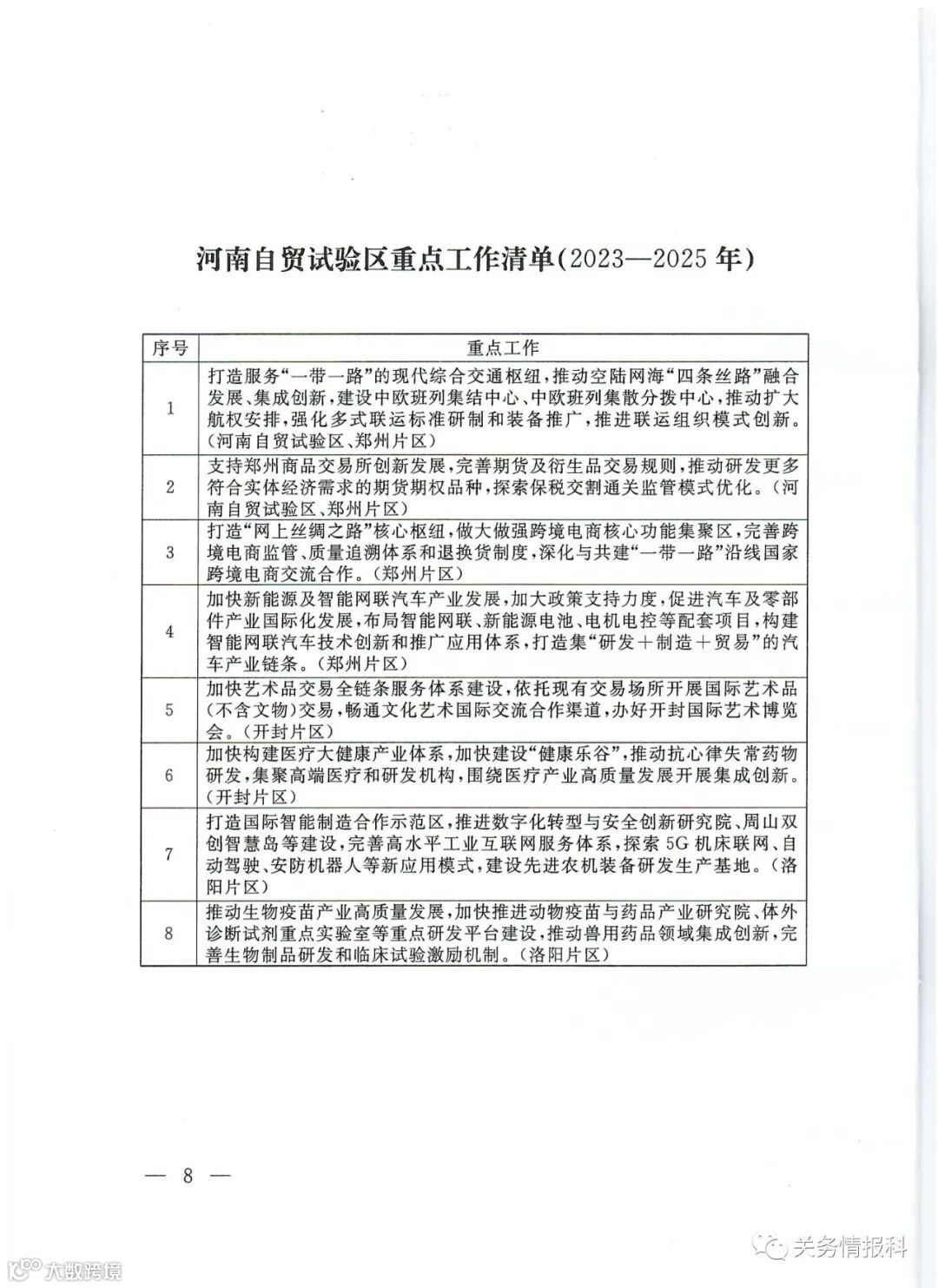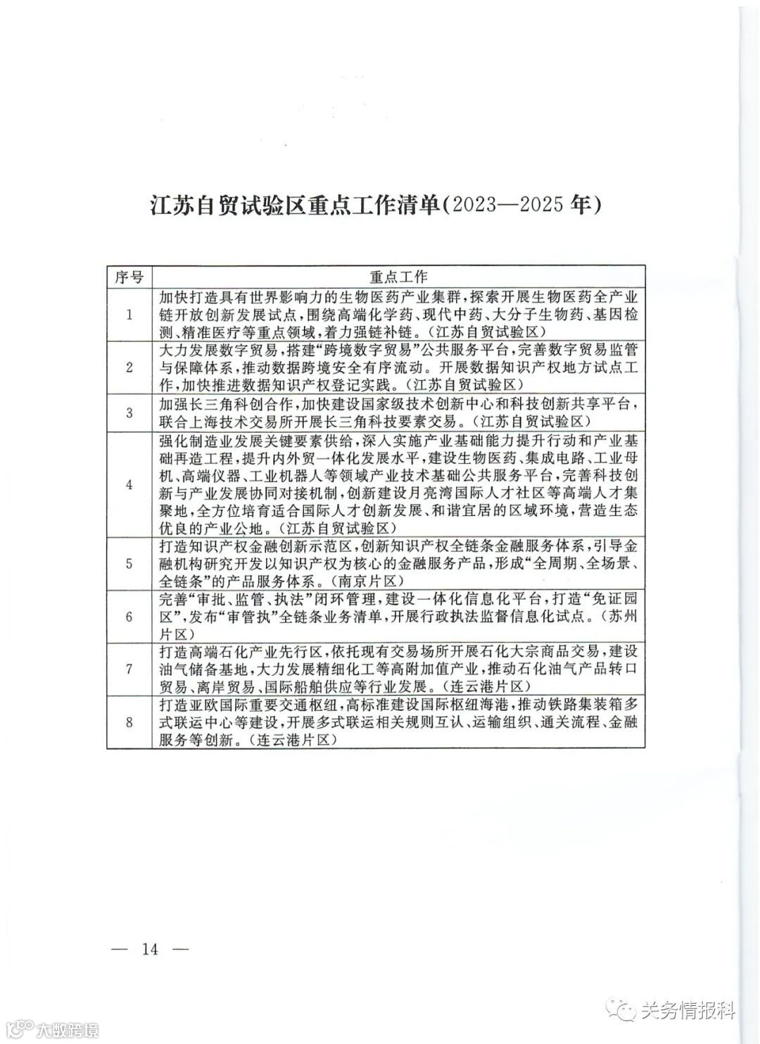 已按各省自贸试验区域列出重点工作清单: