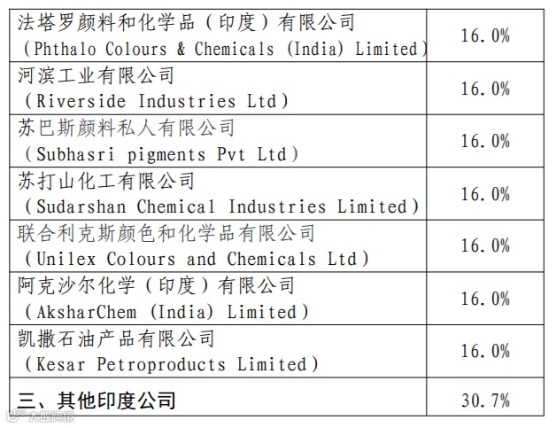 调查范围:原产于印度的进口酞菁类颜料。
