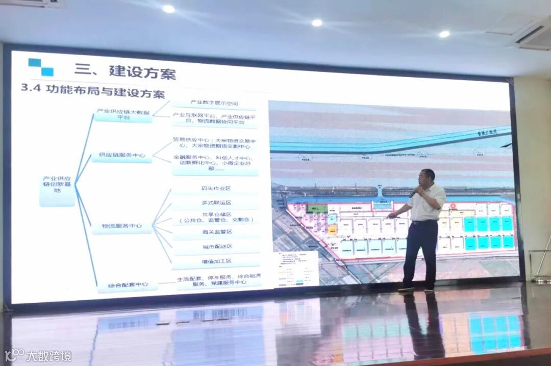 座谈会前,杨逸青经理向与会领导介绍了“浙江大湾区供应链创新基地概念性规划”(该基地是绍兴港拟搬迁新址)。公司供应链业务部门余佳梦介绍、推介了公司正在开展的供应链业务。