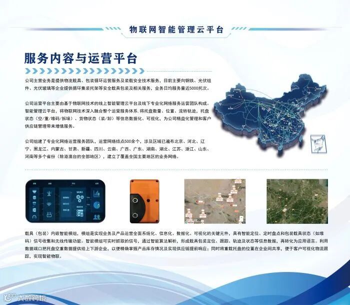 公司基于覆盖全国范围的运营服务网络及载具(包装)产品循环周转体系,借助物联网、数字化技术,建立了物联网智能云平台信息系统及网络货运平台系统,实现了循环物流载具(包装)产品的全生命周期管理,并积极为各类客户提供可视化供应链管理、仓储数据管理、减碳数据记录等多样性数据增值服务。