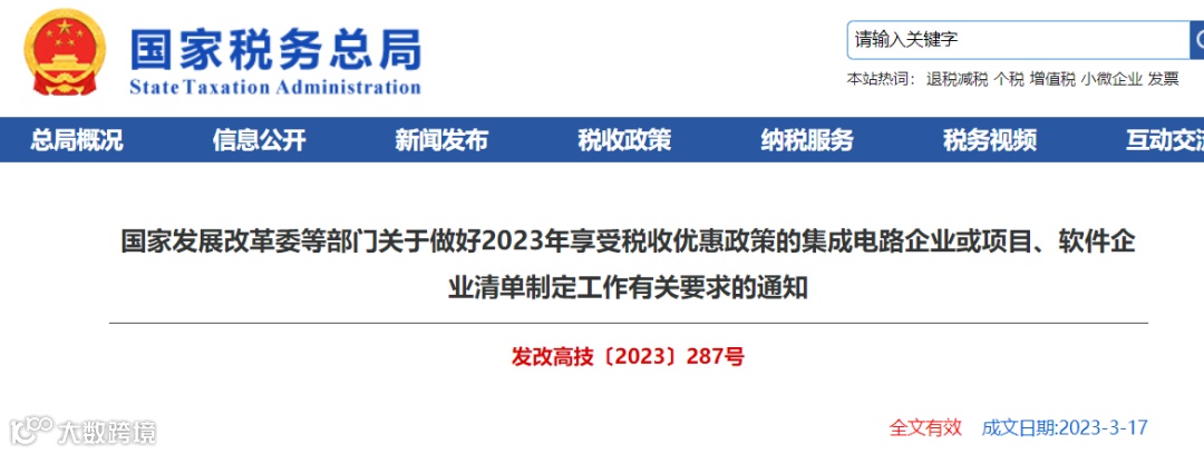 国家发展改革委等部门关于做好2023年享受税收优惠政策的集成电路企业或项目、软件企业清单制定工作有关要求的通知