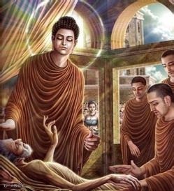 佛告须菩提。诸菩萨摩诃萨。应如是降伏其心。所有一切众生之类。若卵生。若胎生。若湿生。若化生。若有色。若无色。若有想。若无想。若非有想。非无想。我皆令入无余涅盘而灭度之。如是灭度无量无数无边众生。实无众生得灭度者。何以故。须菩提。若菩萨有我相。人相。众生相。寿者相。即非菩萨。