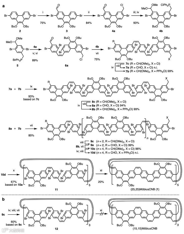 莫比乌斯碳纳米带分子的合成路线。图片来源:ChemRxiv