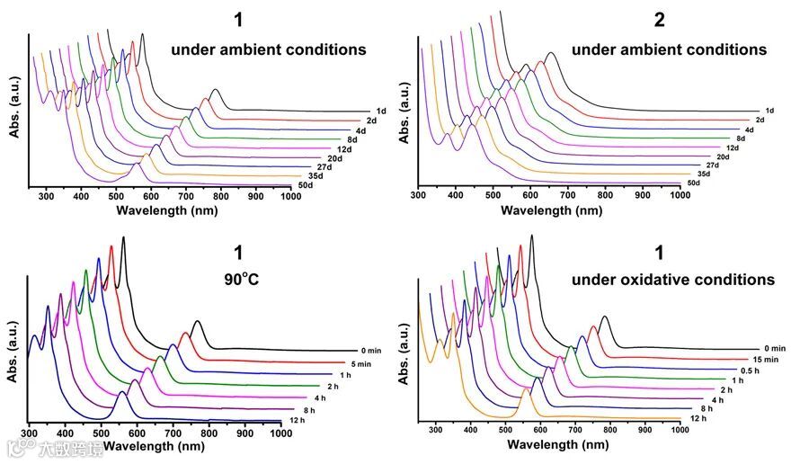 结构研究发现两个Ag21团簇具有相同的二十面体核心和金属个数,但是它们具有不同的超原子电子结构:团簇1为闭壳层的8电子1S21P6,而团簇2为1S21P2的电子构型。理论计算发现两个Ag21团簇的前线轨道具有明显的P轨道和D轨道特征,表明它们均属于超原子团簇。这些结构特征表明,通过不同的配体组合,可以调控团簇的表面几何形状及电子结构。