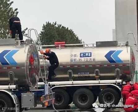 演练主要围绕装有危险货物的液体类槽罐车发生碰撞事故,造成危险货物泄漏,开展救援接驳处置等内容进行。某危险品运输公司一辆装有对二甲苯危险货物的液体类槽罐车,在绍兴袍江某路段发生车辆刮擦事故,造成槽罐车罐体损坏。驾驶员停车熄火后下车进行观察,发现罐车已经发生泄漏,立即关闭车辆总电源,并检查罐车的紧急切断阀是否处于关闭状态。驾驶员随即向110和公司报告事故情况,取出随车的木楔和橡皮榔头,对泄漏点进行堵塞,减少泄漏量。公安交警赶到事故点后进行了封道,交通执法队人员赶到现场后指导开展事故应急救援。公司应急救援小组到达后,立即开展倒罐作业,将事故车辆上的危险品转驳至救援罐车上。应急处置完成后,开展场地清理和封道解除工作。